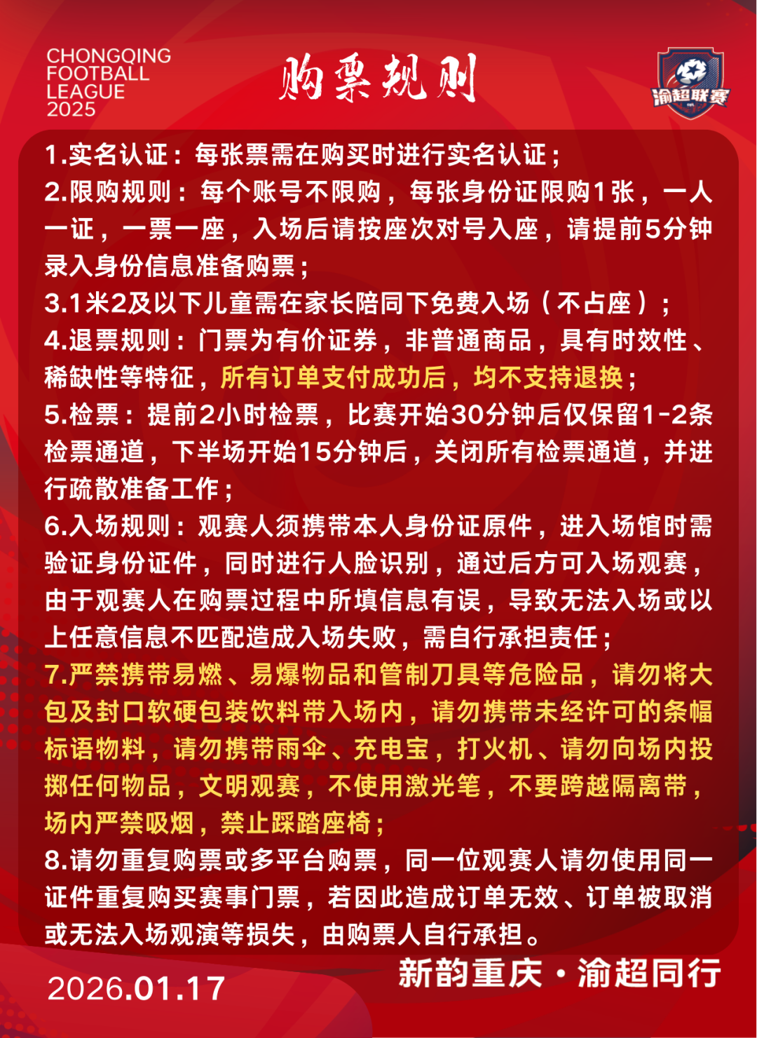 北碚收官之战!明日上午10点开启购票!内附线下售卖点,等你来抢! 作者:本站原创 • 更新时间:2026-01-12 本文采摘于网络,不代表本站立场,转载联系作者并注明出处:https://www.qqfk.cn/Show.php?ID=26