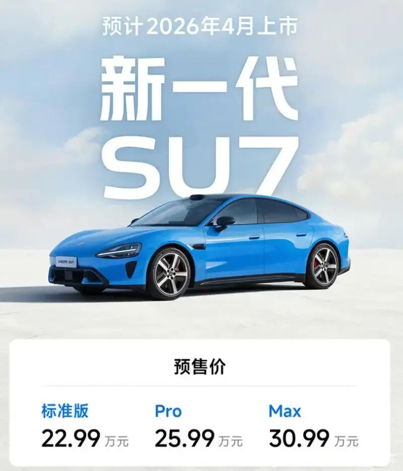 据悉,新一代小米SU7已开启小订,包含3款车型,预售价区间22.99-30.99万元。