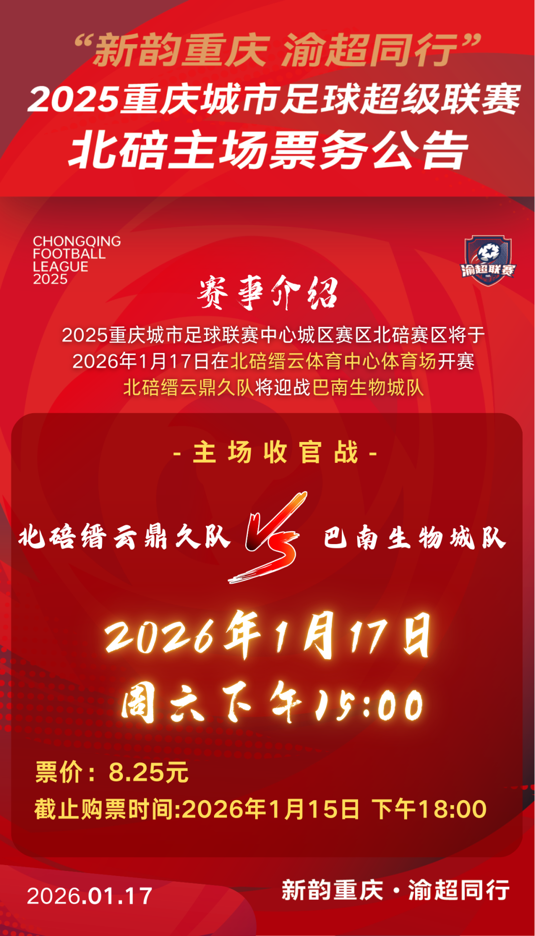 北碚收官之战!明日上午10点开启购票!内附线下售卖点,等你来抢! 作者:本站原创 • 更新时间:2026-01-12 本文采摘于网络,不代表本站立场,转载联系作者并注明出处:https://www.qqfk.cn/Show.php?ID=26